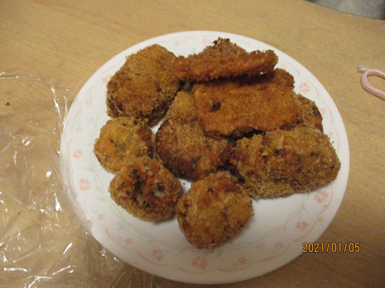 2021年01月05日 K之介のイナカ日記。男の料理は・・・。 TUNE本日コロッケが食いたいと。マッシュポテトを牛乳とバターで捏ねて大中小を。「挽肉」を少々炒めすぎて硬くなった。男の料理はナンカぬけてる。量の加減も男はザツ。作り過ぎて明日も食う事に。以前は小はバアサンだったが今はTUNEが小。
